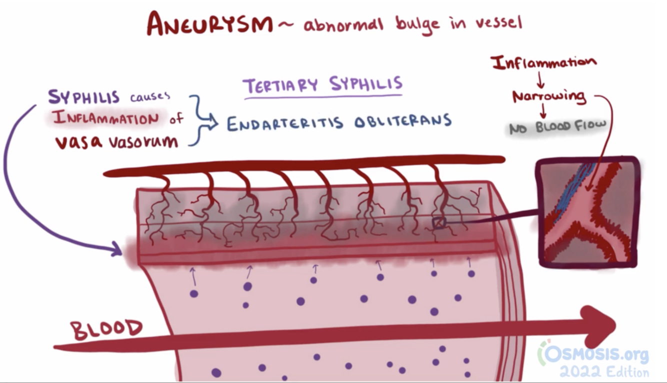 1 - infection damaged the tunica intima damaging vaso vasorum