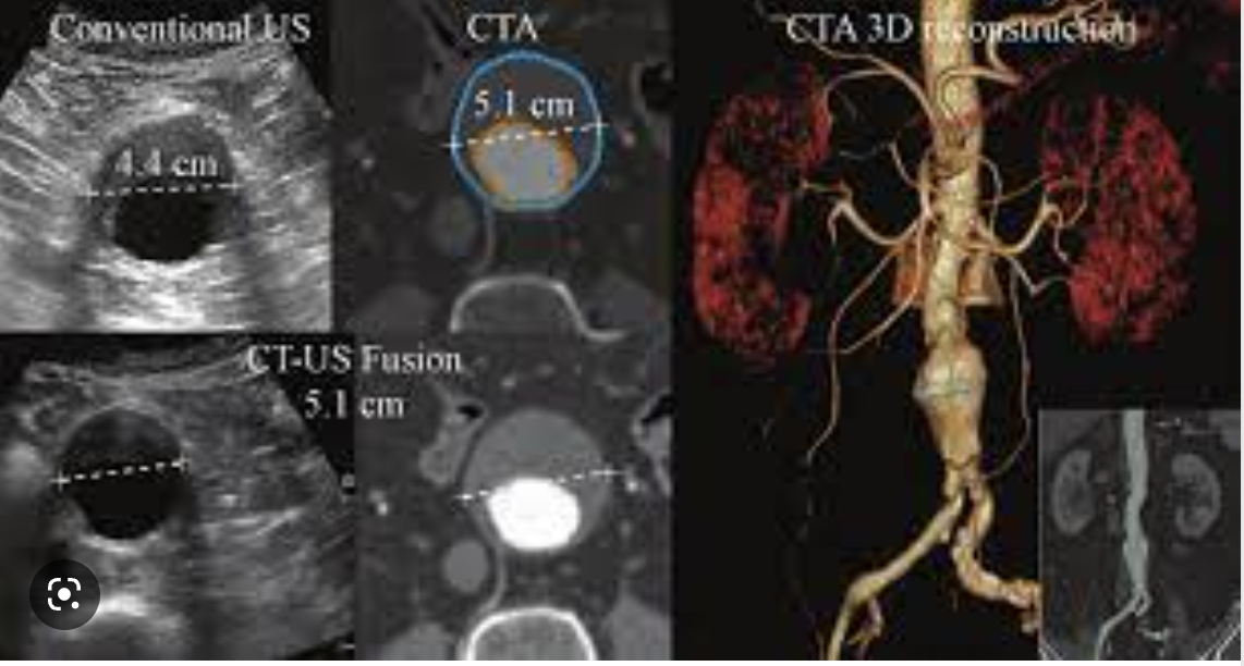In addition to the signs and symptoms a patient may present with, we can investigate if the patient has an abdominal aortic aneurysm (AAA). What is typically the 1st line for diagnosing a patient with a AAA?