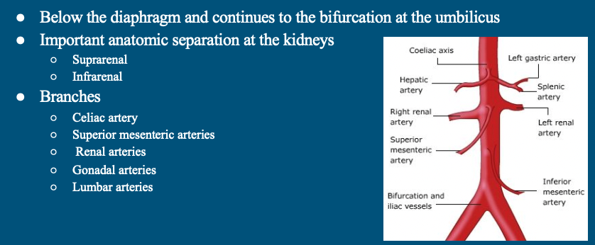 Describe the anatomy of the abdominal aorta