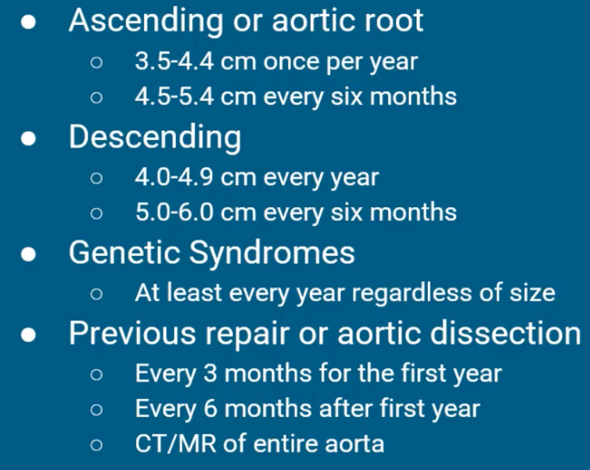 Describe the monitoring for thoracic aneurysms