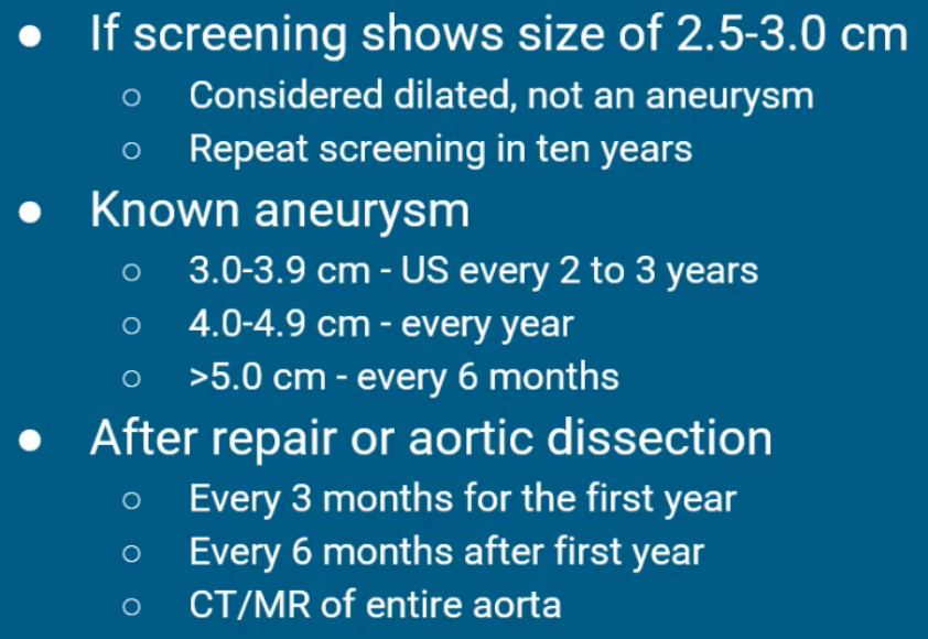 Describe the monitoring for an abdominal aneurysm