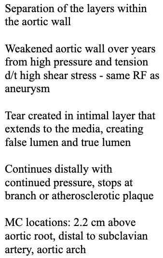 Describe the etiology of an aortic dissection