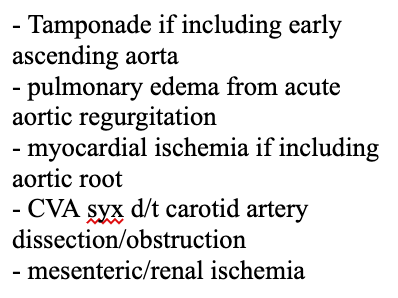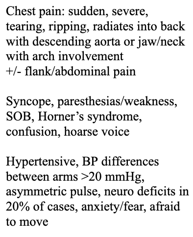 Describe the signs/symptoms of aortic dissection