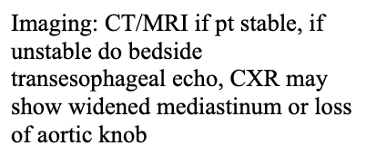 Describe the imaging for aortic dissection