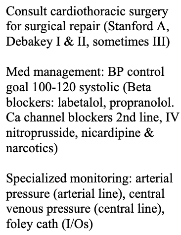 Describe the treatment for aortic dissection