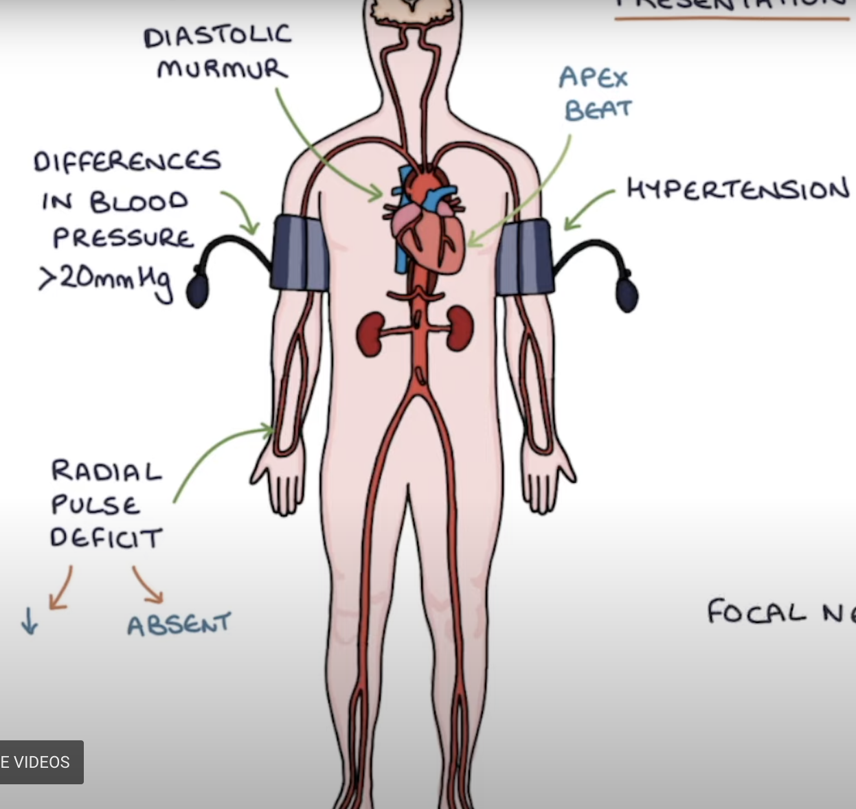 What 2 of the following can often be normal in aortic dissection, but can help rule out other causes of the symptoms?