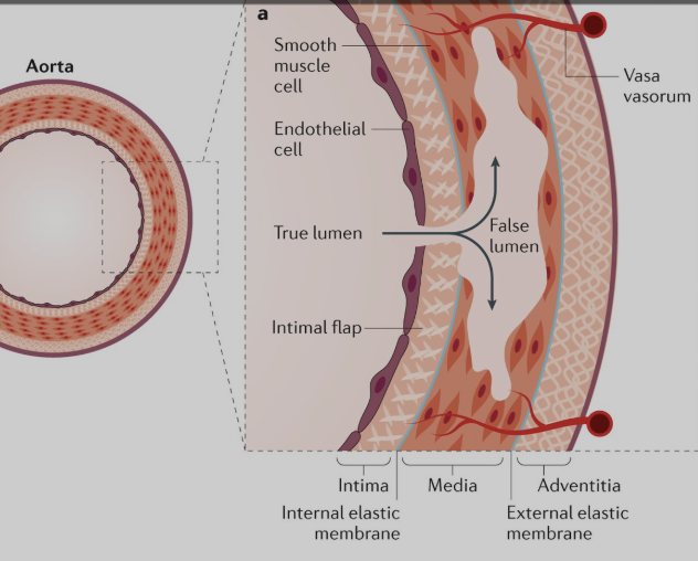 What is the primary mechanism of aortic dissection?