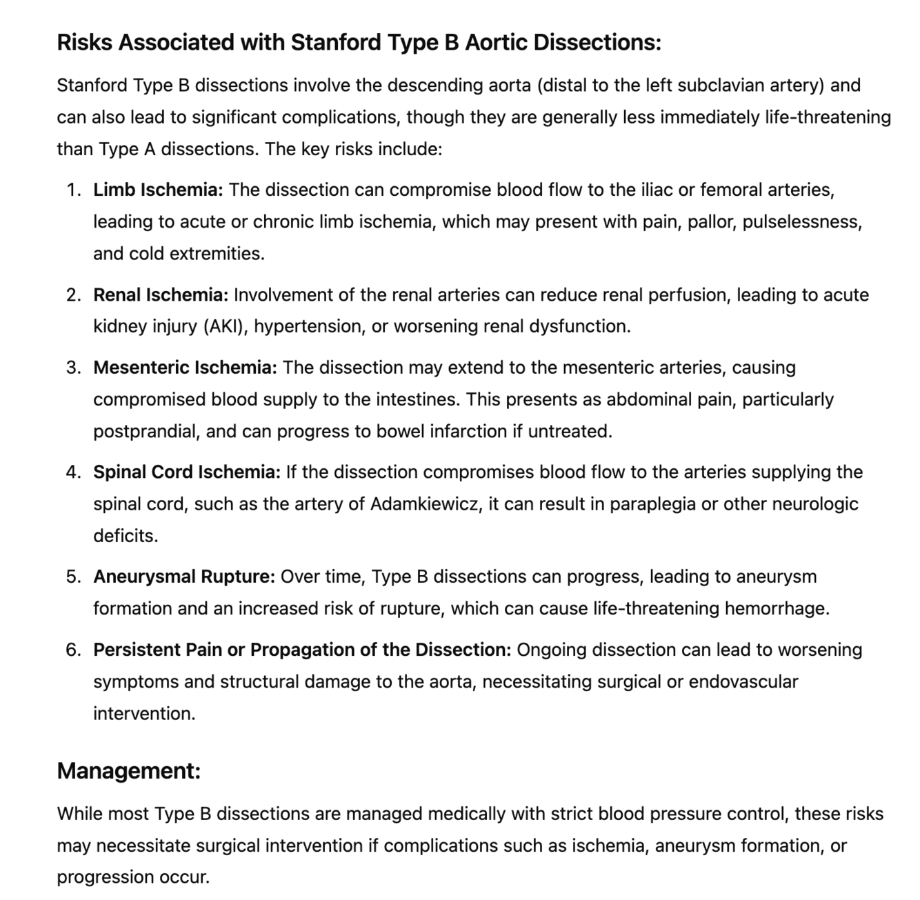 Risk for limb ischemia, renal ischemia, and mesenteric ischemia.