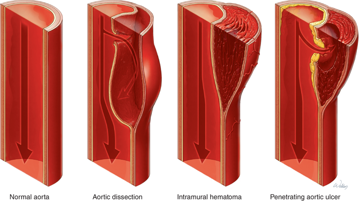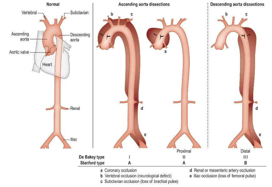 As the dissection extends, branches of the aorta occlude sequentially leading to unequal arm pulses, acute limb ischaemia, and other signs of obstructive ischaemia
