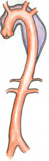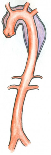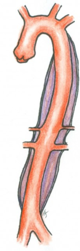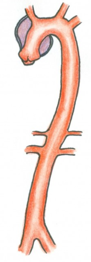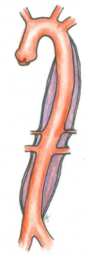 Originates in the ascending aorta, and propagates at least to the aortic arch and often beyond it distally