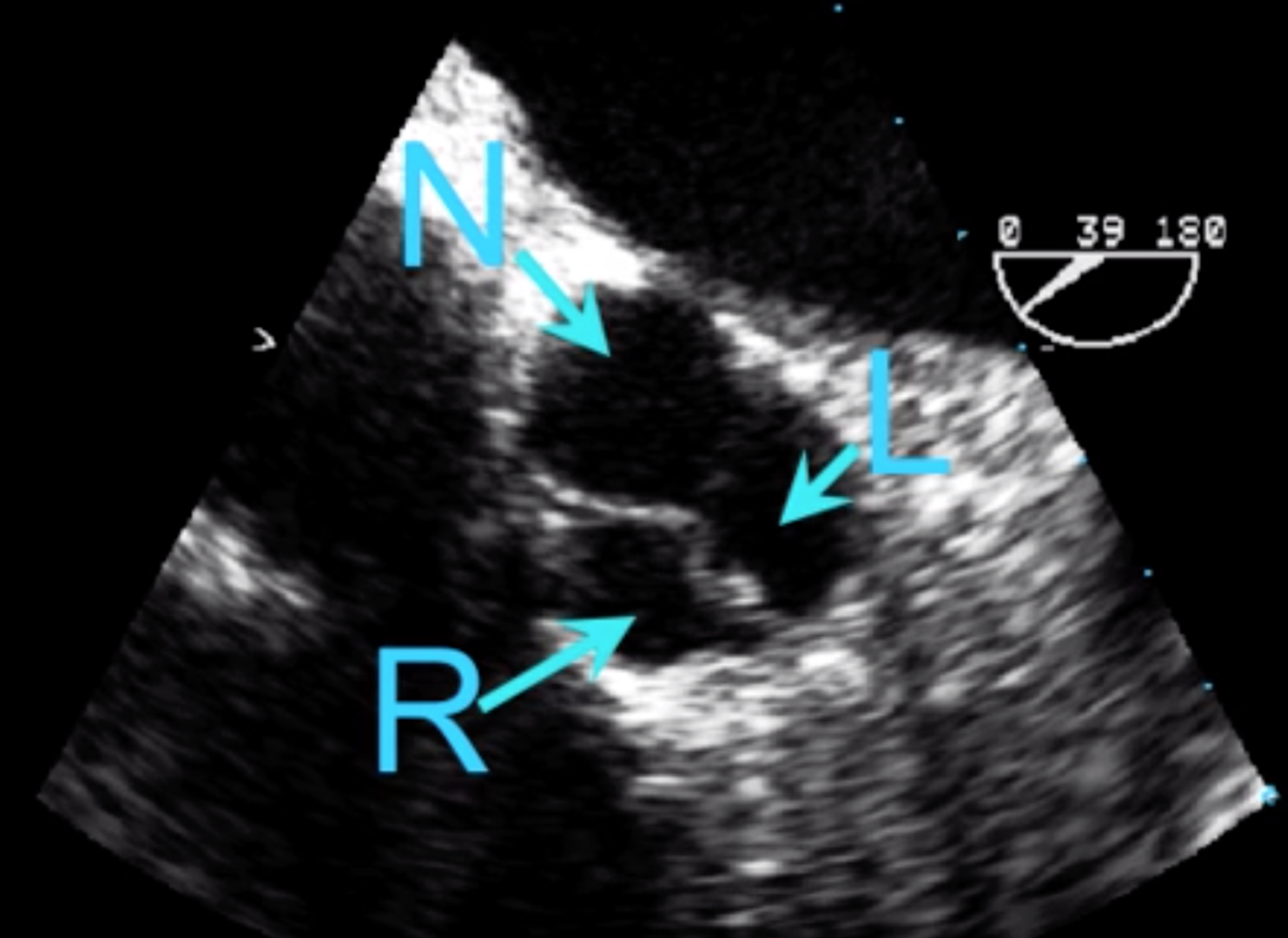 Left or NON Coronary Cusp = Top of the Screen