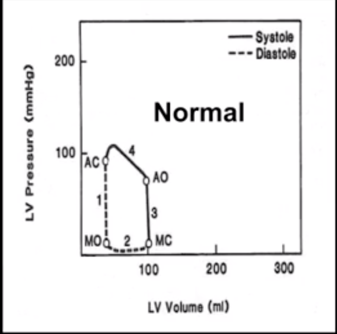 Draw a Pressure Volume loop of cardiac cycle labeling: