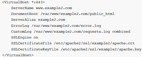 DocumentRoot, logs propios, certificados SSL, directivas, alias, etc.</VirtualHost>