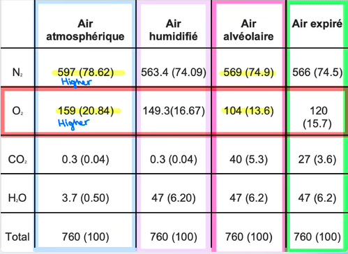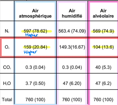 Sachant que la fraction d’oxygène qui est inspiré (FiO2) est de 21% dans l’air ambiant et sachant la pression atmosphérique (Patm), on peut estimer la pression partielle en O2 dans l’air inspiré (PiO2) :