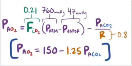 PAO2 = FiO2 (Patm - PH2O) - (PACO2/R)