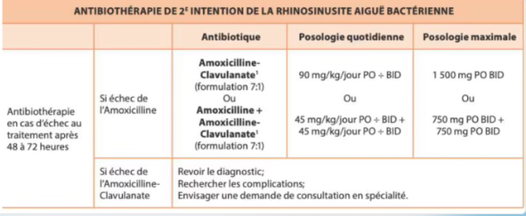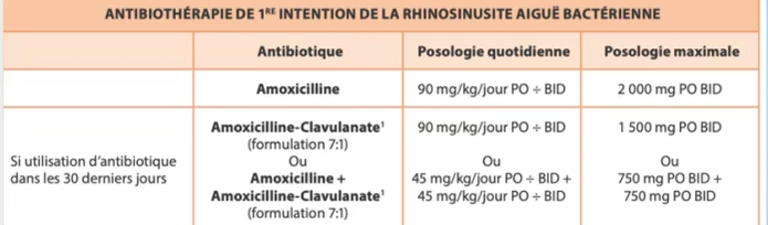 Quelle est l’antibiothérapie de première intention pour la rhinosinusite pédiatrique?