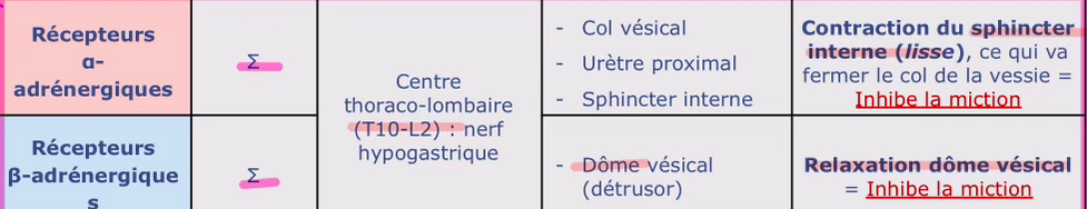 * Récepteurs alpha : surtout à la base de la vessie, col et urètre proximale