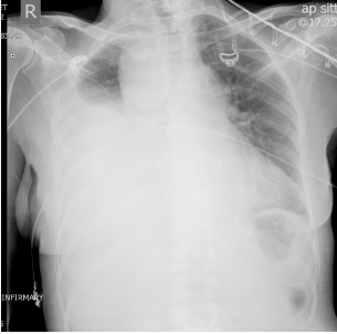 Car on ne verra pas une asymétrie de la transparence de la plage pulmonaire par rapport à l’autre, étant donné que le sang se répand plutôt au niveau postérieur de l’espace pleural dans cette position
