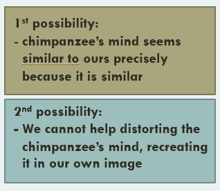 chimpanzees CAN reason about others’ knowledge on the basis of what others have/have not seen.
