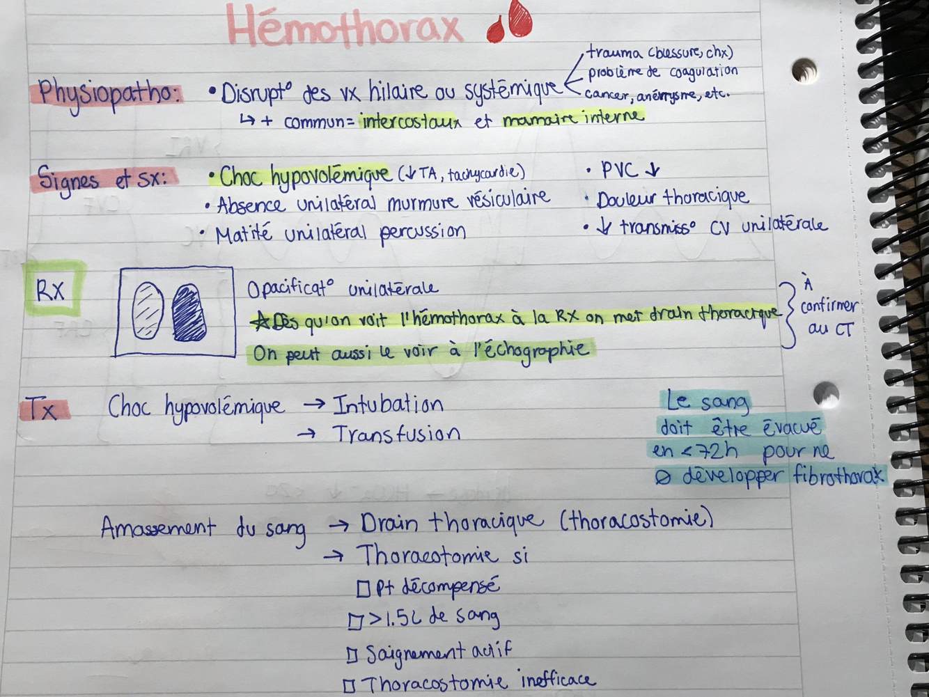 –> le liquide pleural est drainé dans les ganglions intercostaux, mammaires, diaphragmatiques et médiastinaux alors que le liquide alvéolaire est drainé dans les ganglions bronchopulmonaires