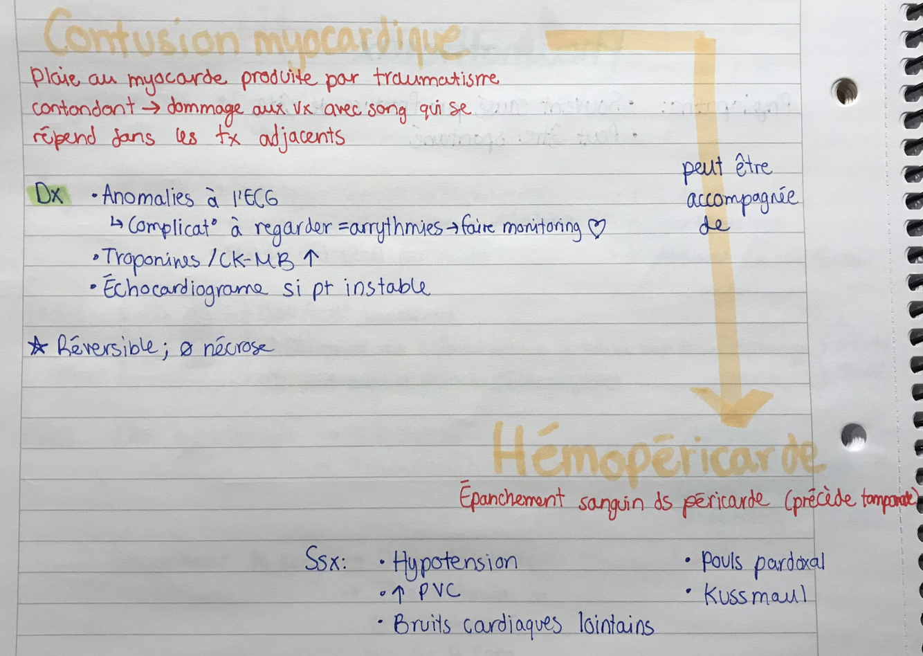 Quelle est la différence entre une contusion myocardique et un hémopéricarde?
