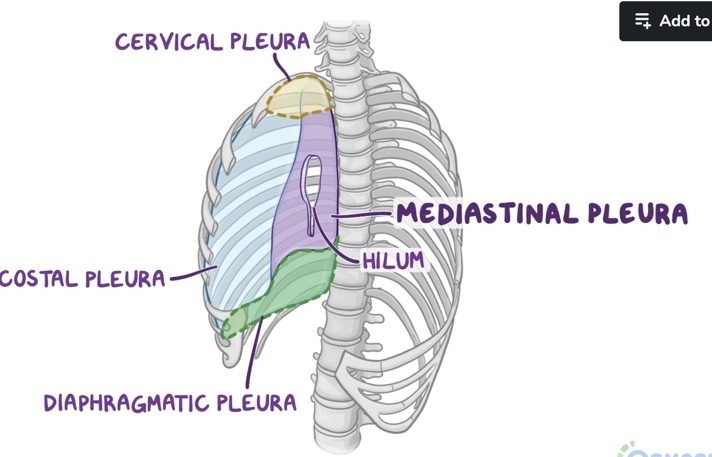 V–> ils sont maintenus contre la paroi thoracique seulement par la pression négative et la force de tension du liquide pleural