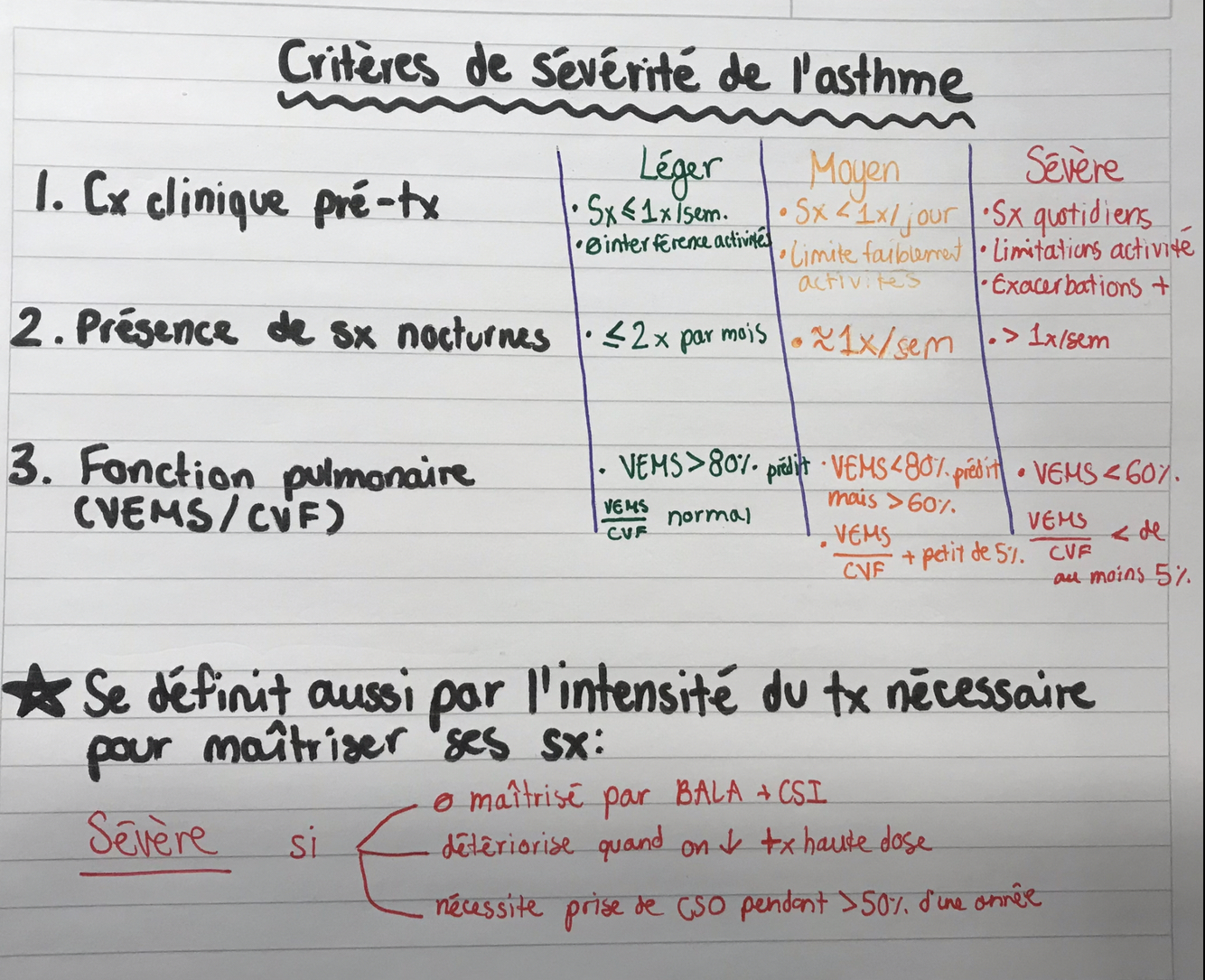 Quels sont les 3 critères de sévérité de l’asthme