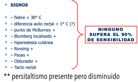 Menciona los signos más importantes que nos hablen de una apendicitis aguda