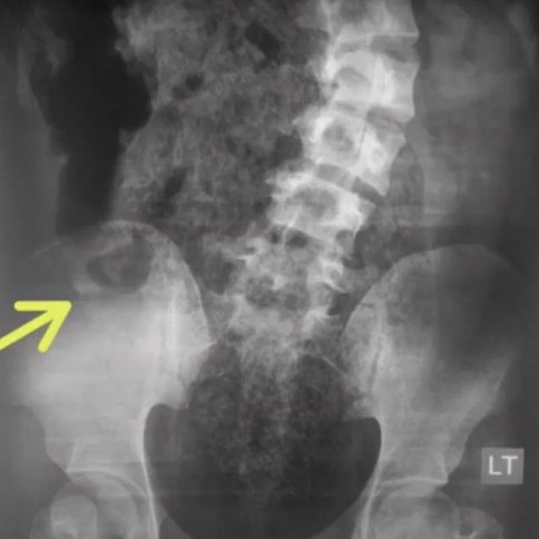 D: HiperDensidad de articulación sacroiliaca o FID derecha