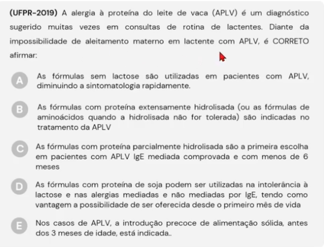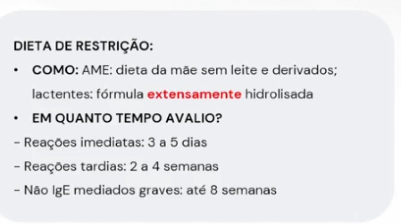 Em quanto tempo avaliar pacientes com APLV após a dieta de restrição?