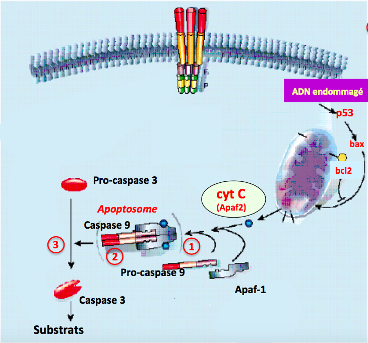 L’apoptosome est un complexe macromoléculaire comprenant APAF-1, La caspase 9 et le cytochrome C. Le cytochrome C permet l’assemblage de l’apoptosome