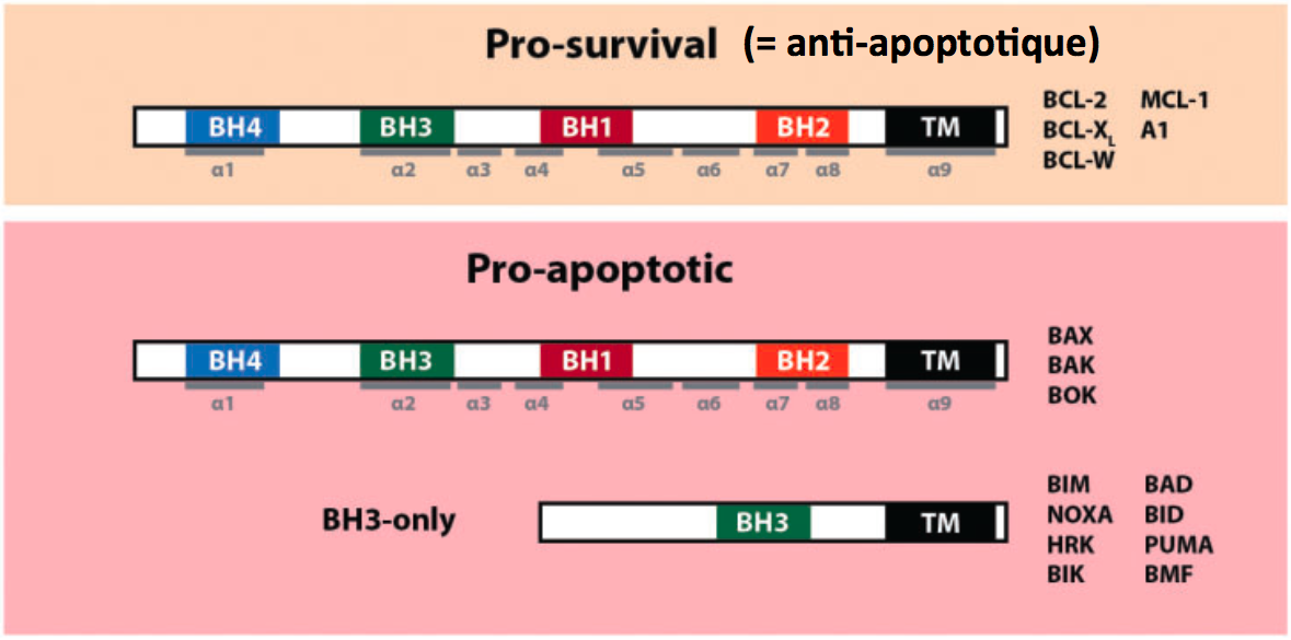 Ces protéines partagent des propriétés structurales communes: bcl-homology domains = BH