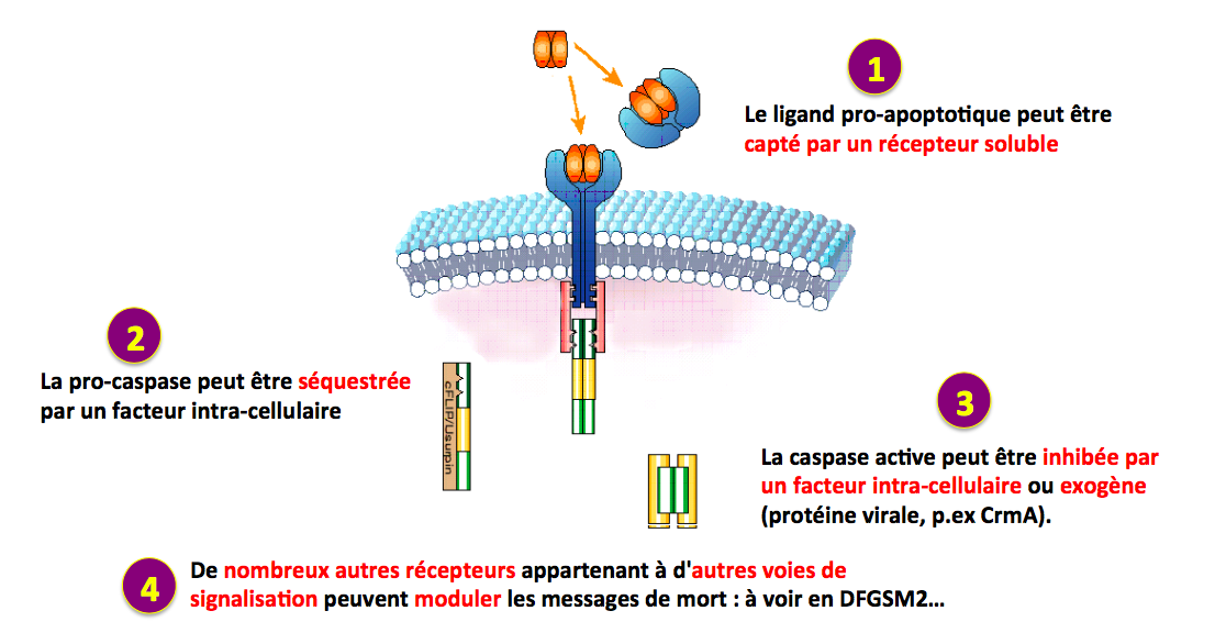 Dans le cytosol, des protéines IAP (Inhibitor of Apoptosis Proteins) peuvent se fixer sur la caspase 9 dans l’apoptosome et inhiber son activité pro-apoptotique