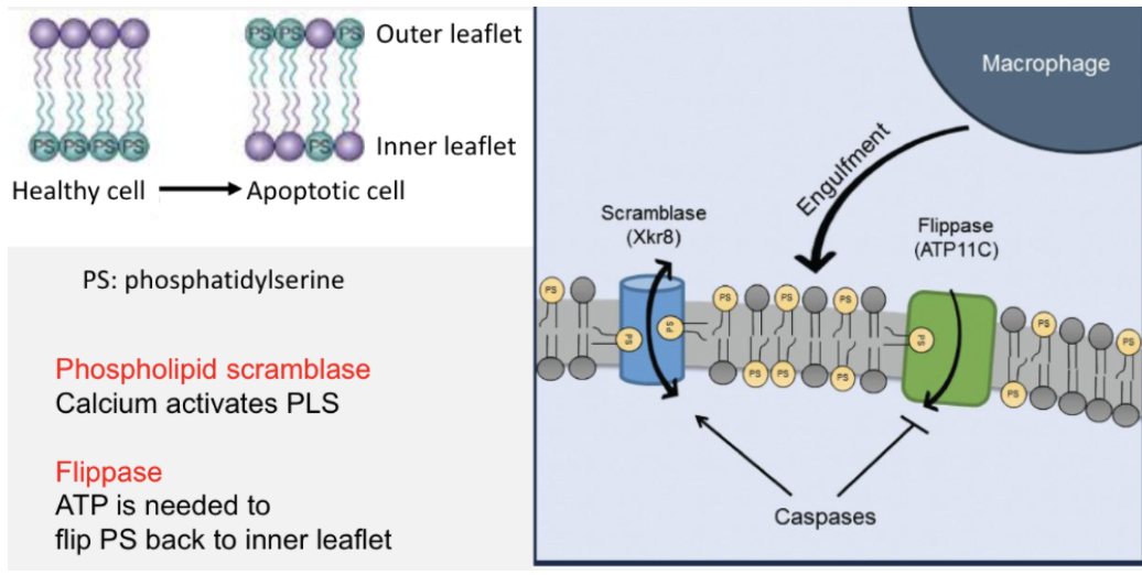 = Scramblase activated by caspases –> allows macrophages to engulf