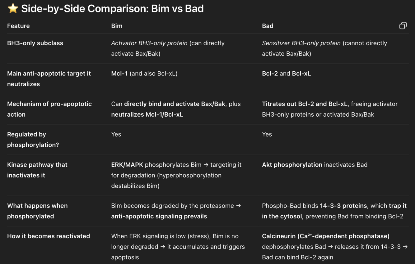Bad acted on by kinase (Erk) and phosphtase (calcineurin) for control
