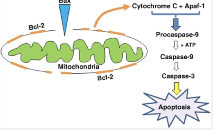diagram of simple apoptosis from induction of Bax into membrane of mitochondria