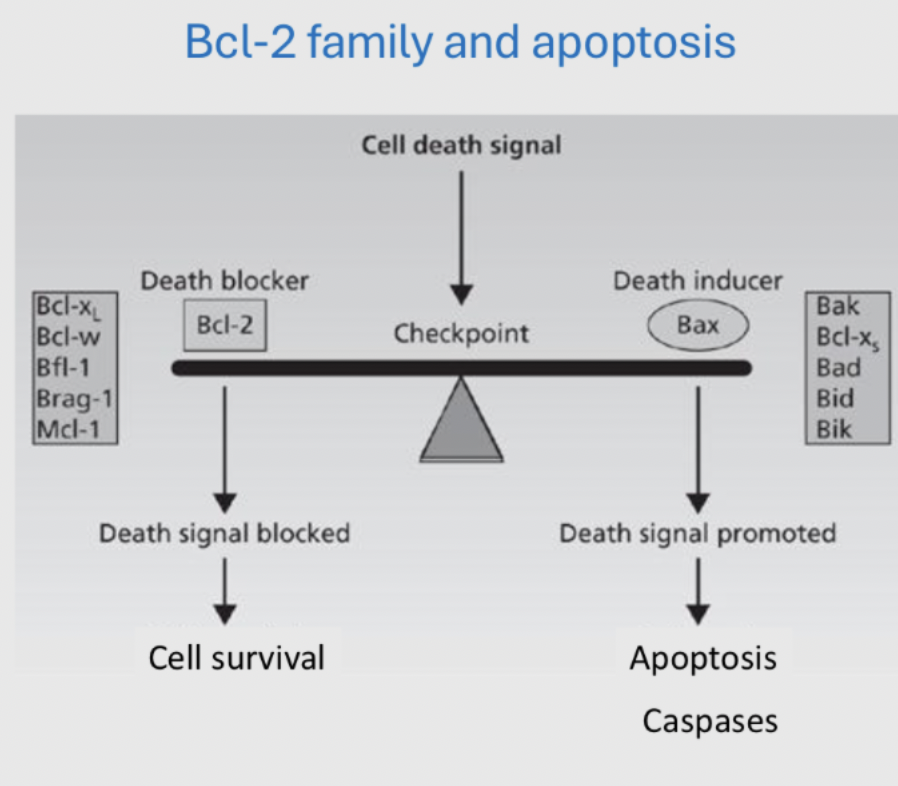Bax binds to membrane and Bcl-2 –> ‘titrates’ out the Bcl-2 protecting the membrane
