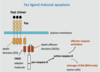 Fas/FasL –> FADD + Pro-caspase-8 via death domains and death effector –> BID to tBID –> MOMP