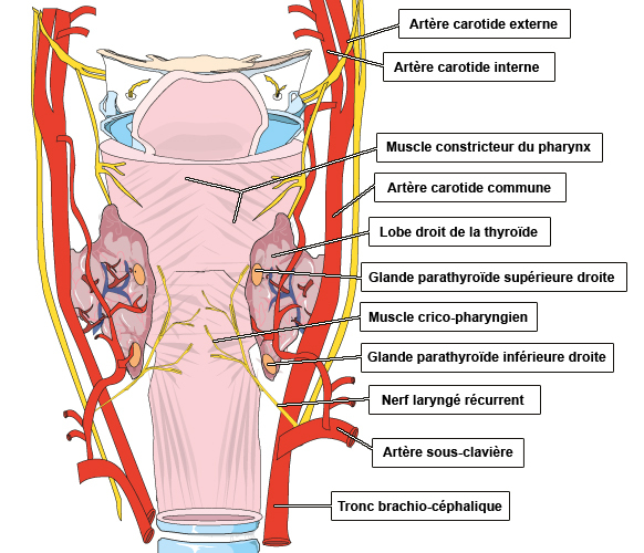 Quelles structures anatomiques se trouvent postérieurement à la thyroïde?