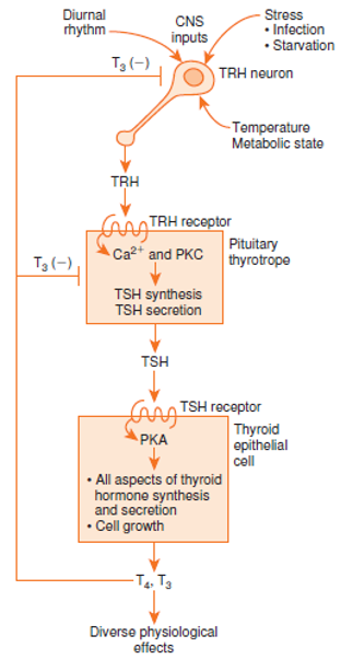 Puisque la variation diurne de la sécrétion de TSH est petite, la sécrétion d’hormones thyroïdiennes et sa [ ] dans le sang sont assez constants. Seulement de petites ↑ de la sécrétion de TSH et de la relâche de T4 survient pendant la nuit.