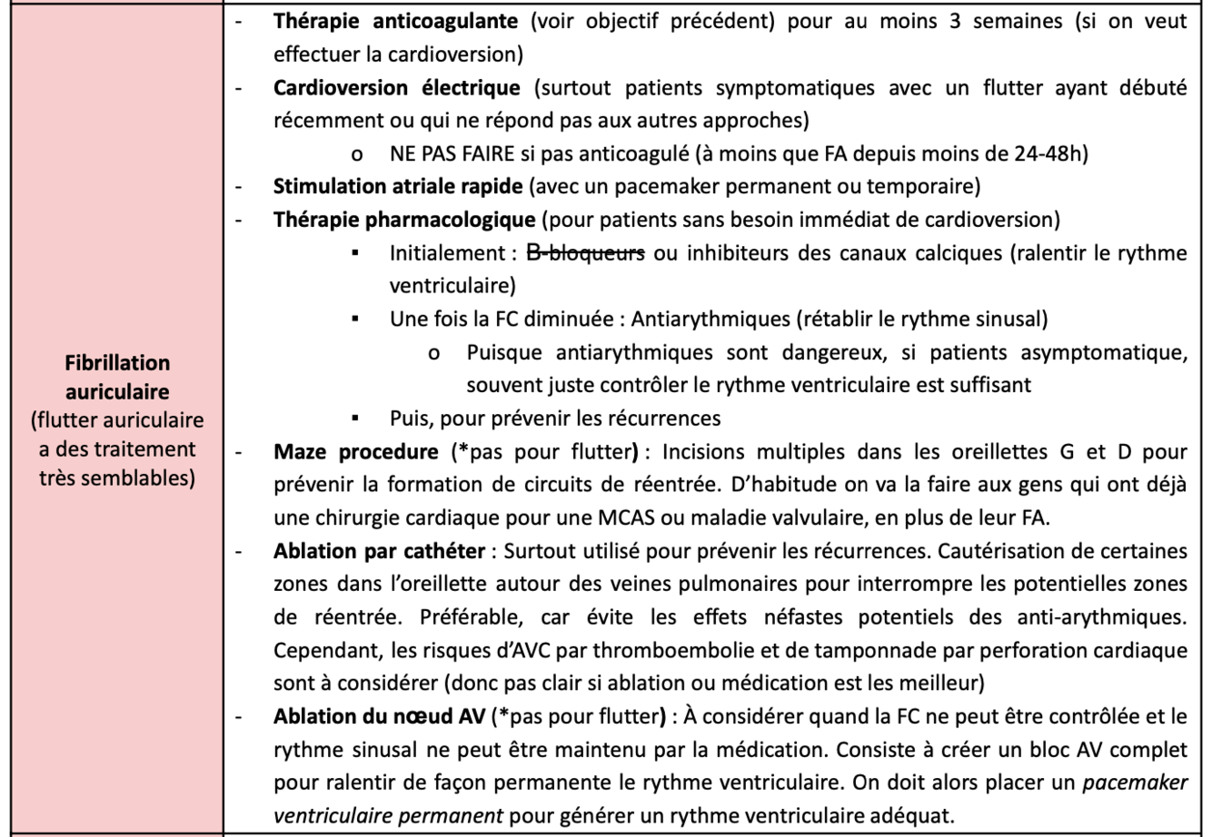 Par rapport au traitement des arythmie, sans donner d’explication dit comment on traite fibrilation auriculaire?