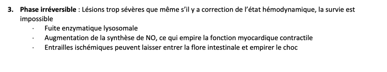 stade 3. phase irréversible du choc
