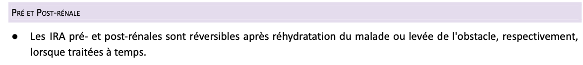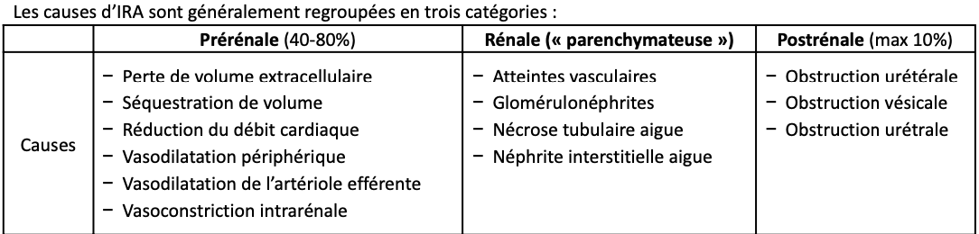 Quels sont les causes rénales de IRA?