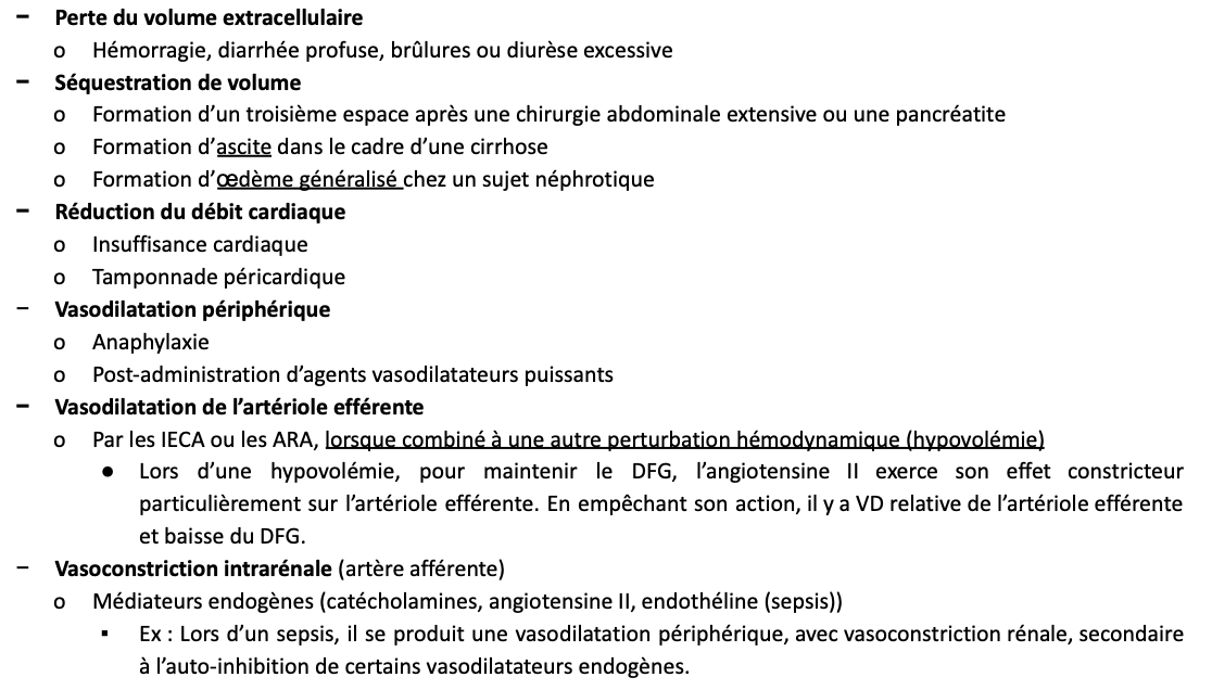 Quels sont les causes prérénales de IRA?