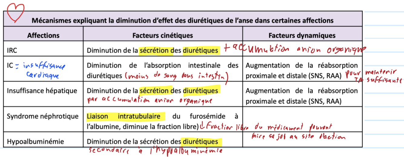 Par rapport aux différents mécanismes de résistances des diurétiques, explique IC?
