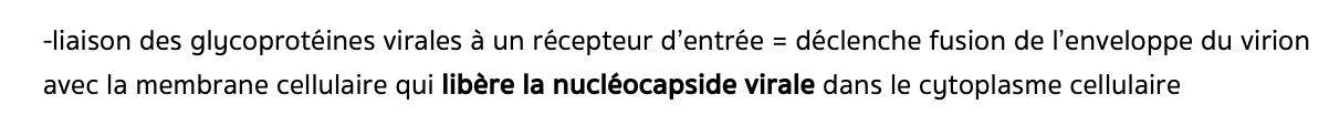 La liaison des glycoprotéines virales à un récepteur d’entrée permet quoi?