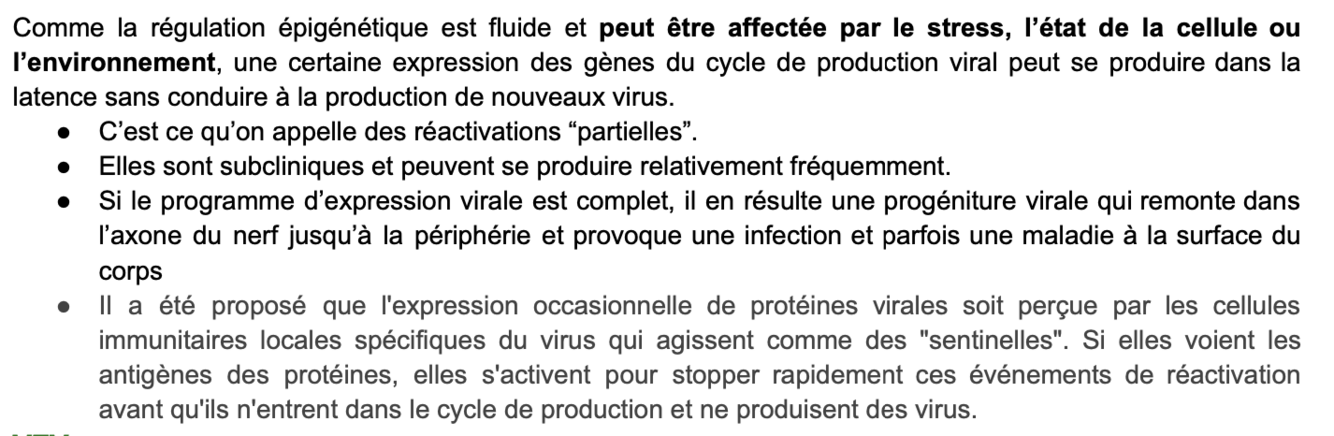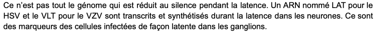 dans certains types de cellules (surtout les neurones) : le génome viral devient silencieux par défense de l’hôte et entre dans un état latent