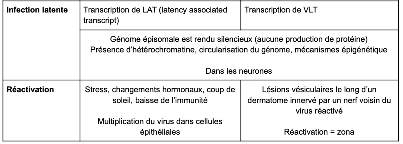 Décrire l’infection latente et la réactivation pour VZV et HSV