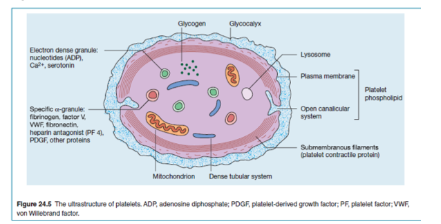 Les plaquettes sont aussi riches en protéines de signalement et en protéines du cytosquelette, ce qui permet le changement rapide entre la forme quiescente et active.