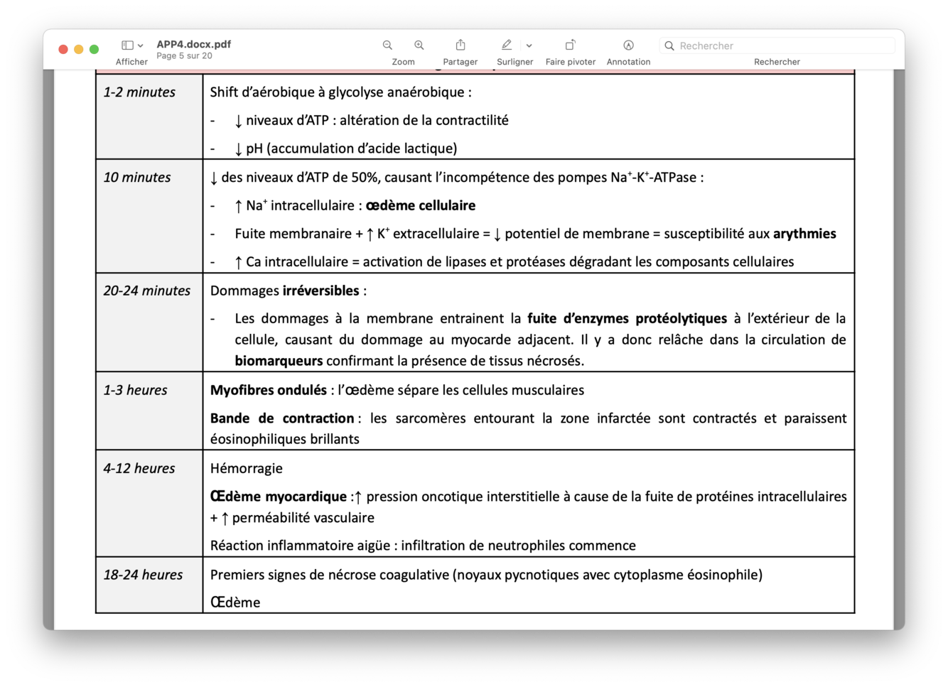 Dommages irréversibles à cause de la fuite d’enzyme proteolytique qui cause dommages au myocarde adjacent